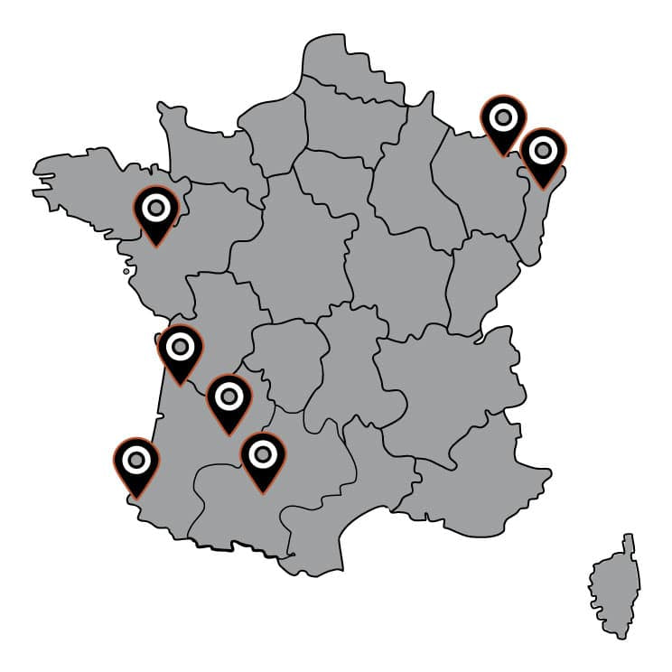 La carte ci-dessous illustre les lieux où nos solutions sont déjà en action, mais notre ambition ne s’arrête pas là : nous intervenons partout en France pour répondre à vos besoins, où que vous soyez.