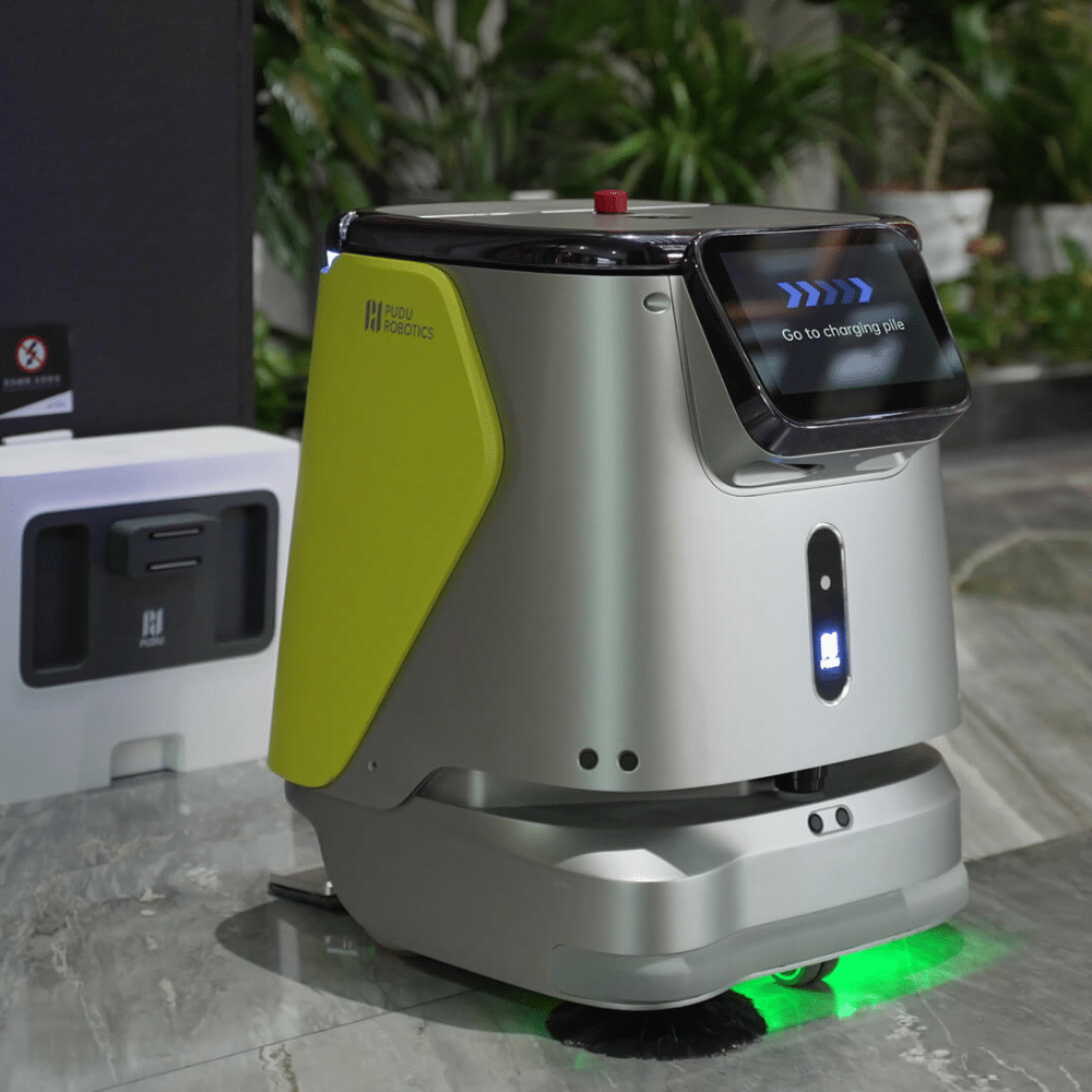 Découvrez l'efficacité du robot de nettoyage intelligent PUDU CC1, conçu pour révolutionner l'entretien de vos espaces professionnels. Avec ses fonctions de balayage, aspiration, lavage et récurage, il assure un nettoyage complet et sans effort.